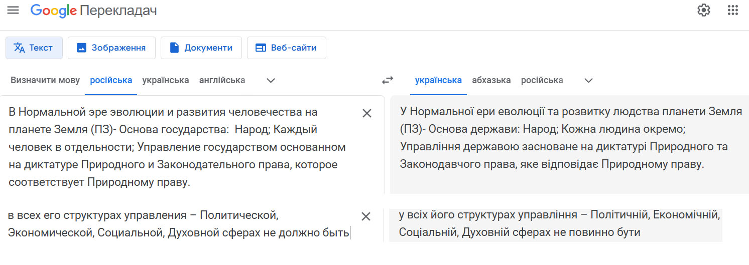 Выше искаженный текст в машинном переводе на украинский язык, ниже оригинал текста на основном языке сайта русском: и в архиве ТАУГ НГО ПЗ, а также правельный перевод в Google переводе. j047040 для подтверждения искажения если вы читаете на русском,можно проверить – правое окно вверху экрана, переведите текст на Украинский язык. сравните его – правельный перевод в Google переводе. Вывод – не нада искажать “преднамеренно” украинский язык и на этих основаниях поляризовать народ планеты Земля, народ уже достаточно поляризован войной между Россией и Украиной в Аномальной эре в конце ее существования.